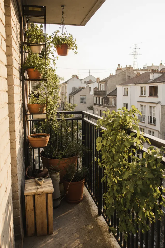 Use vertical gardening, container planting, and multi-functional setups like railing planters or wall-mounted pots. Choose compact or dwarf plant varieties and focus on high-yield crops like herbs, lettuce, or cherry tomatoes. Maximize sunlight and water efficiency.